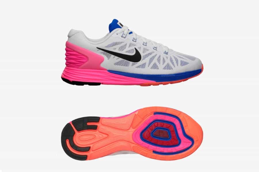 En esta versión de las Lunarglide +6 se ha rediseñado la mediasuela diviéndola en dos piezas y con doble densidad para volverla más suave. Se incorporó, además, la tecnología Phylon en la zona media lateral para brindar mayor sujeción, durabilidad y estabilidad en la zona de impacto del pie. También posee una espuma Lunarlon en la zona lateral que proporciona mayor amortiguación. Cuenta con una plataforma Dynamic Support cerca del talón para proporcionar estabilidad para transiciones suaves sin peso adicional. Su parte superior cuenta con una espuma avanzada con perforaciones para mayor sujeción y ventilación. Posee tecnología Dynamic Fit que junto a los cables Flywire permite un ajuste similar a un guante. Su interior no posee costuras para evitar daños en la piel por roce y cuenta con ranuras flexibles para estimular el movimiento natural del pie. Su peso es de 221 gramos (número 39).