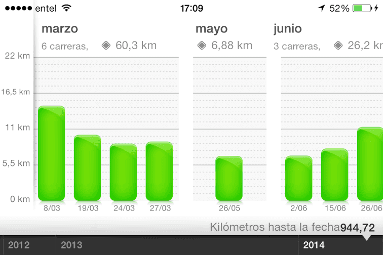 El registro histórico permite obtener datos promedios generales como la cantidad total de carreras, el ritmo promedio total o mensual y aspectos muy específicos de cada carrera como el tipo de superficie, el calzado utilizado, el tiempo y la sensación de bienestar o malestar tras la carrera.