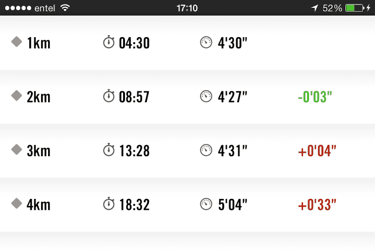 Una de las cosas principales que buscamos en la apps de running es que nos diga la distancia. En ese punto Nike+ cumple a cabalidad, no solo porque muestra la distancia y el tiempo recorrido sino que además permite programar un tipo de carrera: para correr un durante un tiempo determinado, una distancia determinada o para superar un récord, configuraciones en las que el programa nos alertará con mensajes de voz el qué tan cerca o lejos estamos del desempeño estimado cada cierto kilometraje. Esta función es óptima para realizar planes de entrenamiento elaborados y ver el rendimiento histórico, cuando repetimos alguna carrera.