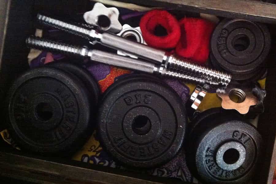 Set de pesas: Lo más importante de pensar a la hora de comprar pesas, es hacer la inversión de mancuernas con pesas intercambiables. Si bien puedes pensar que las pesas de colores son lindas y no ocupan espacio, si eres constante en tus entrenamientos en poco tiempo habrás superado tu fuerza y el peso que compraste, vas a superarlo muy fácil. Comprando discos y mancuernas puedes ir agregando y comprando pesas a medida que vas aumentando en tu resistencia muscular. A mí me gusta mucho este equipo que venden en las tiendas Sparta.cll porque tiene una buena tanda de pesas para empezar y el equipo no ocupa nada de espacio en tu casa. Si no quieres hacer esa compra, puedes buscar mancuernas e ir agregando discos a tu colección a medida que te sientas más seguro con tu fuerza.