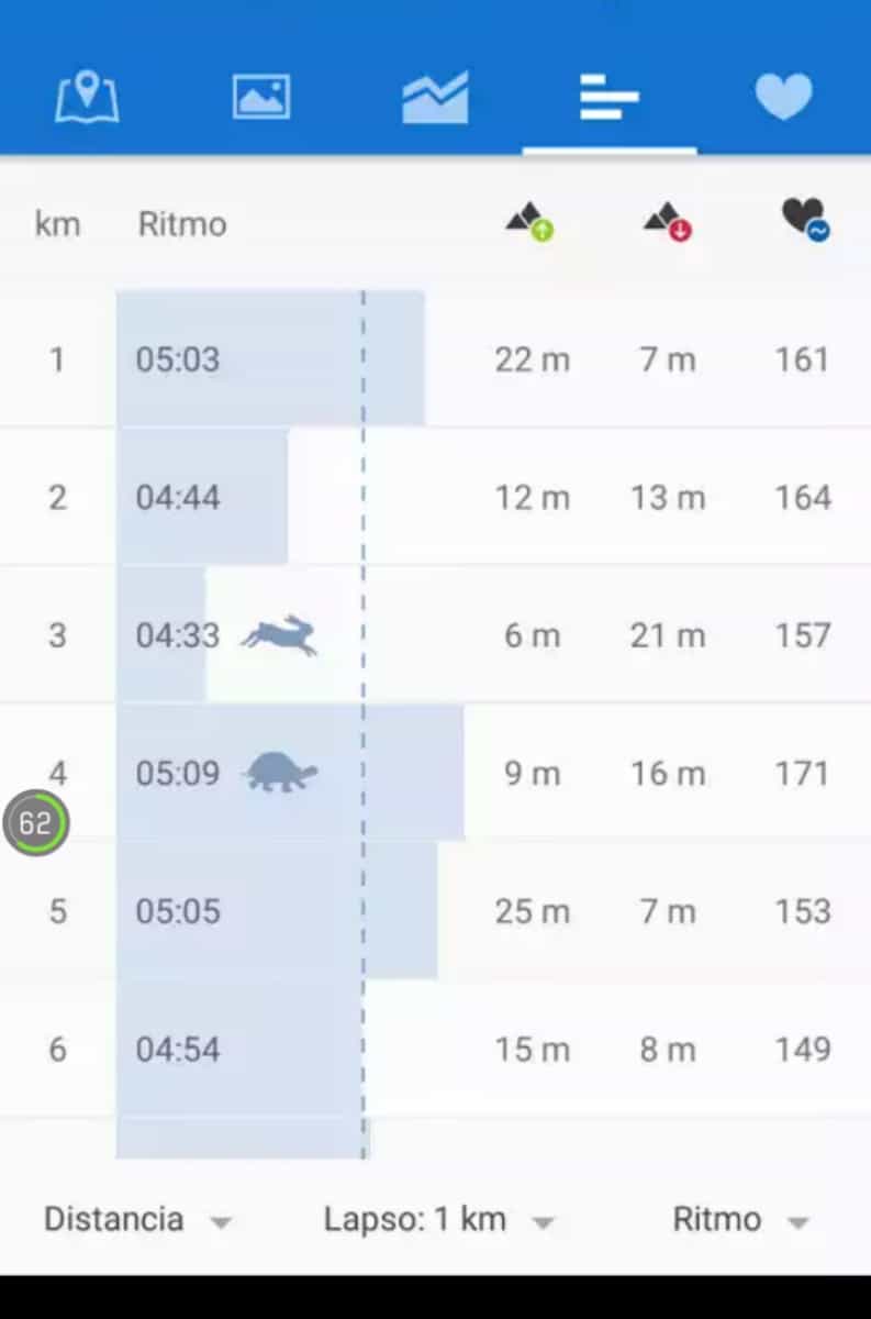 Te muestra en gráficos de colores, bastante didácticos, todos los datos que registra durante el entrenamiento. al igual que con toda la información que recopila, la almacena en un histórico al que se puede acceder en cualquier momento.
